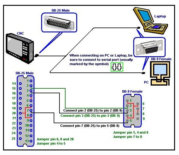 Cáp Điều Khiển Máy Tiện Thép Makino CNC FDNC1710 and FANUC 15S to Computer Null Cable RS232 DB9 Female to DB25 Male Length 10M