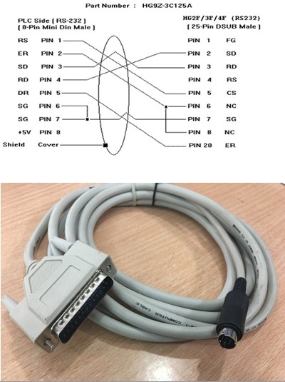 Cáp Điều Khiển PLC Programming IDEC HG9Z-3C115A Communication Cable Micro3 Smart FC4A Series PLCs RS485 8 Pin Mini DIN to DB25 Pin Male Gray Length 1.8M