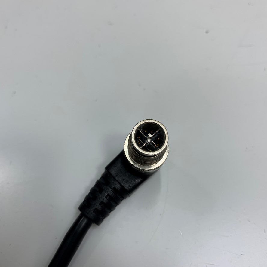 Cáp Điều Khiển Right Angle M12 8 Pin X-Code Male to RJ45 Plug CAT5E Ethernet 24AWG Shielded PVC Black Cable For Cognex Industrial Camera