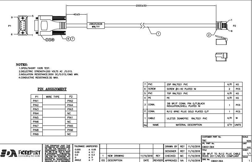 Cáp Điều Khiển RJ12 MMJ DEC 6P6C Lẫy Khóa Trái to RS232 DB9 Female Length 1.8M