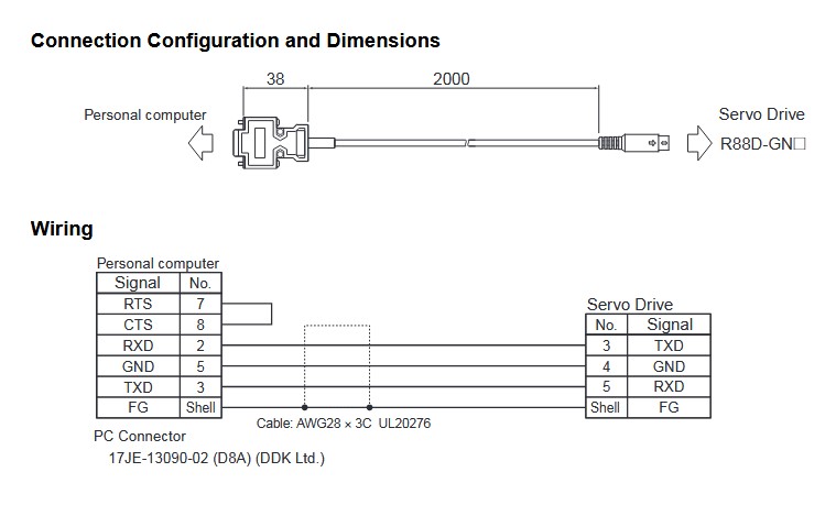 Cáp Điều Khiển RS232 Communication R88A-CCG002P2 Cable 17Ft Dài 5M Mini Din 8 Pin to DB9 Female For CN3 Port OMRON G Series AC Servo Drive to Computer