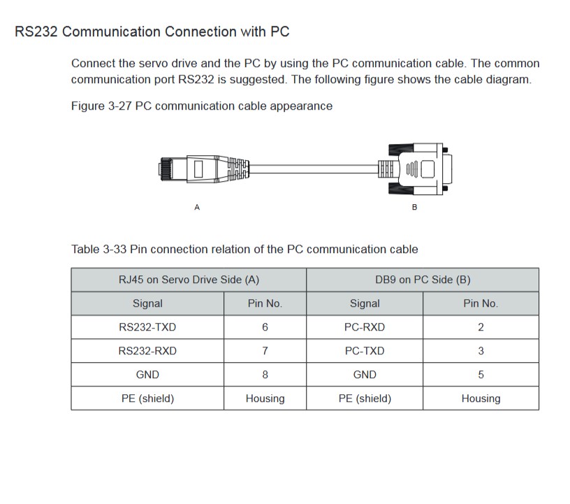 Cable RS232 Communication Connection Servo Drive Inovance IS620P Series with PC
