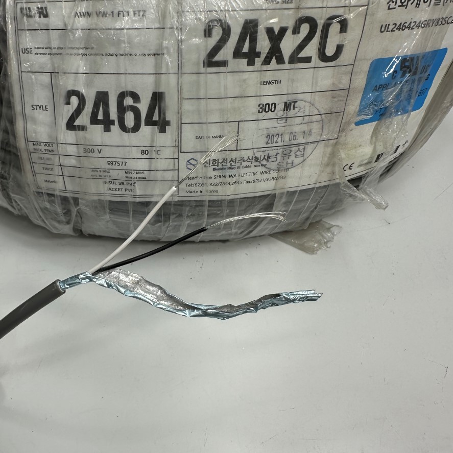 Cáp Điều Khiển SHIN HWA Shielded Aluminium Foil 300M 1000ft 2 Core x 0.25mm² Cable E97577 AWM 2464 24AWG 80°C 300V OD 5.0mm Grey For Industrial Power and I/O Data Control Cable RS422/RS485 Communication