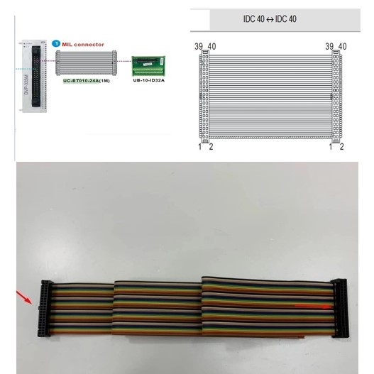 Cáp Điều Khiển UC-ET010-24A 3.3ft Dài 1M MIL Connector Flat Ribbon Rainbow Cable IDC 40 Pin 2.54mm For I/O Delta Module DVP32SM11N Với Module Terminal Block UB-10-ID32A