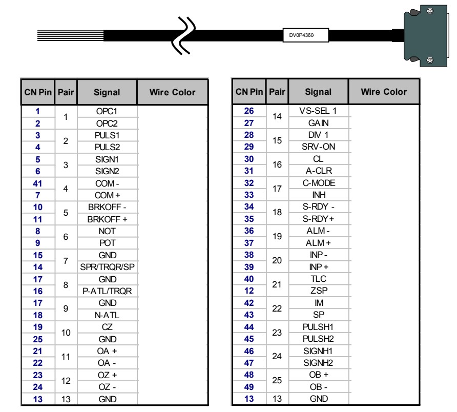 DV0P4360 Panasonic Servo Drive X4 I/O Communication Cable 50-Pin