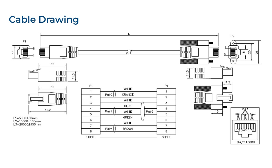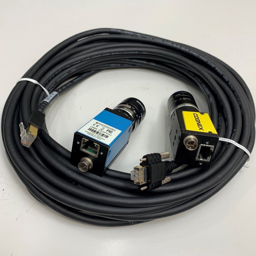 Cáp GigE-R-10M Dài 10M 30ft Cable High Flex GigE CAT6A Ethernet RJ45 Screw Locking Cable E497707 AWM 2464 VW-1 80C 300V 4P X 26AWG For Basler Cognex CCD GigE Industrial Vision Camera