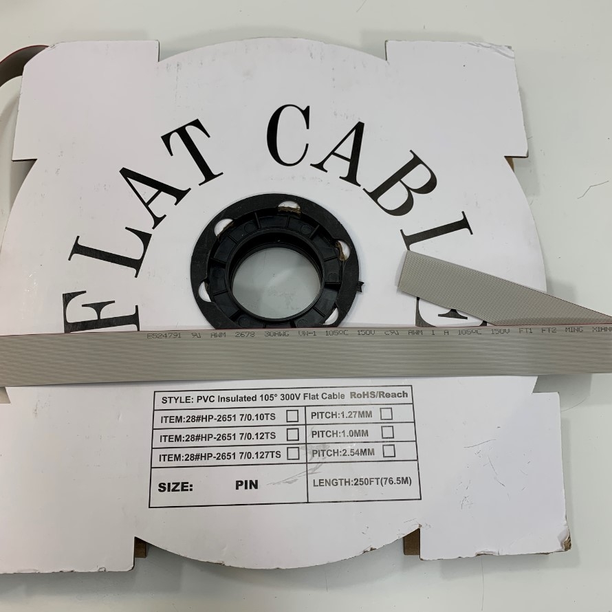 Cáp IDC 40 Pin Flat Ribbon Cable 40 Way 0.635mm Pitch Unscreened 25.4mm Dài 50M Length E524791 AWM 2678 30AWG VW-1 105ºC 150V FT1 FT2 Ming Xiang