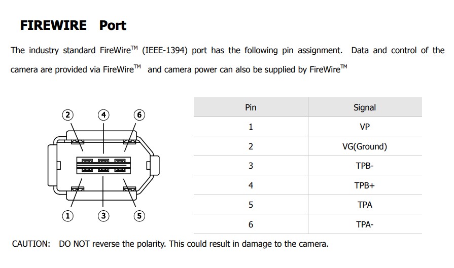 Cable Firewire 400 IEEE1394A 6/6 Pinout