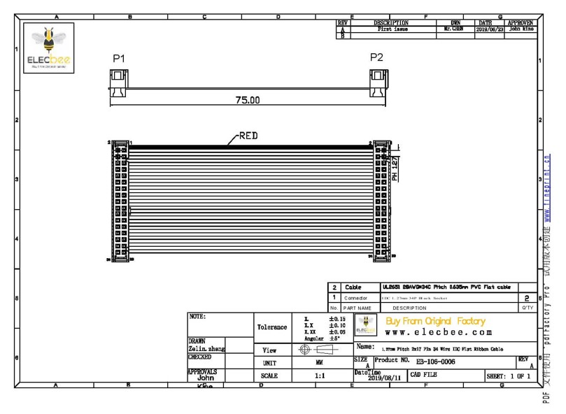 Cáp Kết Nối 34 Pin IDC Flat Ribbon Cable 34 Wire 1.27mm Pitch 2x17 Pin with 2 Connectors For CMC CNC PLC Length 35CM. Các dây dẫn Ribbon cáp ruy băng phẳng IDC, Thẳng cáp riêng biệt dễ dàng cho sạch chấm dứt với tiêu chuẩn dây kết nối, giắc cắm và chân. Ribbon cable tiết kiệm không gian và thời gian trên mạch kết nối hội.