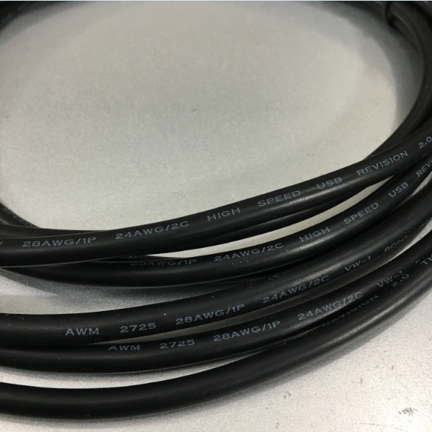 Thông số in nổi trên sợi cáp: AWM 2725 28AWG/1P 24AWG/2C VW-1 80°C 30V TH USB 2.0 I/II A FT1 60°C 30V High Speed USB Revision 2.0