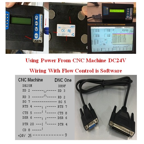 Rắc cắm kết nối DNC One: RS232 DB9 Female 9Pin (Có điện áp DC 24V đấu với chân số 9)