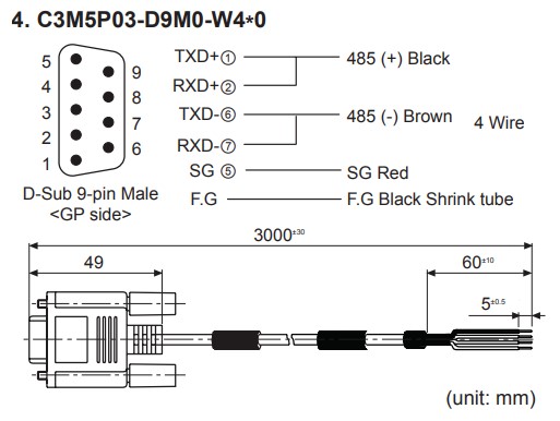 Loại sản phẩm: Cáp Kết Nối C3M5P03-D9M0-W4*0 Dài 3M Cable RS485 DB9 Male to 3 Core Terminal Block For HMI Autonics GP/LP Series