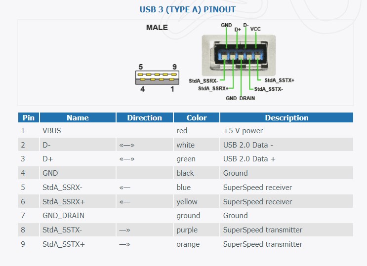 1 - USB Type-A (9 pin) USB 3.0 Male |