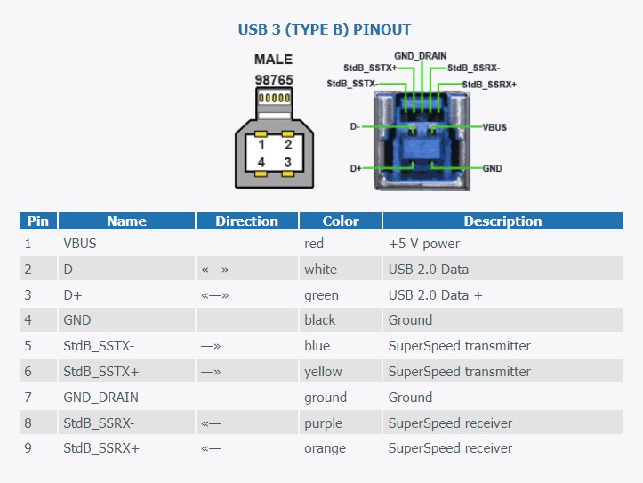1 - USB Type-B (9 pin) USB 3.0 Male |