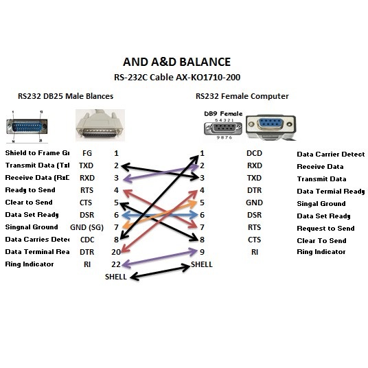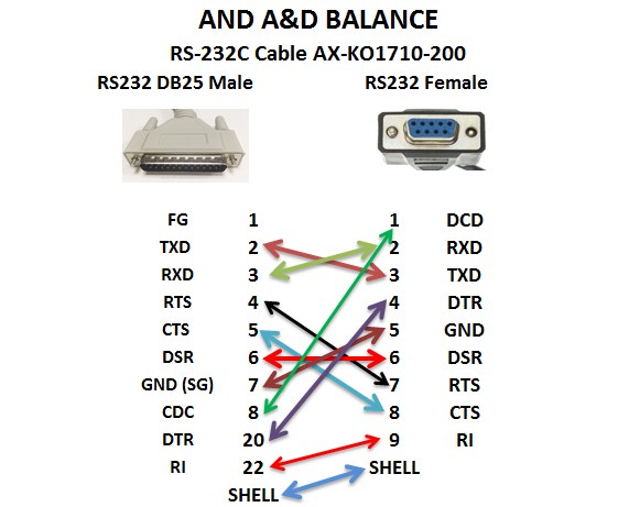 Cáp Kết Nối Cân Điện Tử Với PC Và Đọc Các Giá Trị Trọng Lượng Trực Tiếp Vào Excel For A&D Balances RS-232C Cable AX-KO1710-200 DB25 to DB9 Length 5M