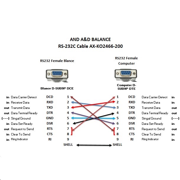 Cáp Kết Nối Cân Điện Tử Với PC Và Đọc Các Giá Trị Trọng Lượng Trực Tiếp Vào Excel For A&D Balances RS-232C Cable AX-KO2466-200 DB9 to DB9 Length 0.5M
