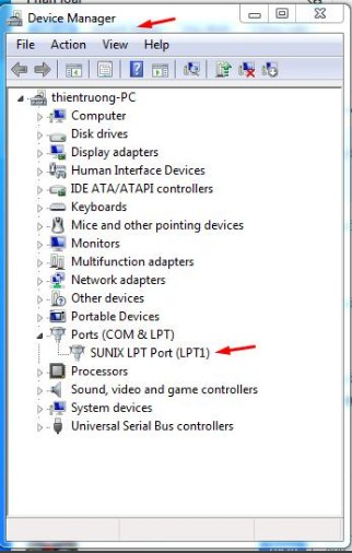 Trên hầu hết các PC có một cổng Parallel LPT tích hợp duy nhất, cổng sẽ xuất hiện với Windows dưới dạng Parallel LPT 1 tuy nhiên điều này không phải lúc nào cũng đúng. Cách tốt nhất để làm điều này là tìm trong Trình quản lý thiết bị Windows trong phần có nhãn "Cổng (COM & LPT)". Phần này sẽ chứa danh sách tất cả các cổng Parallel LPT được cài đặt trên PC của bạn.