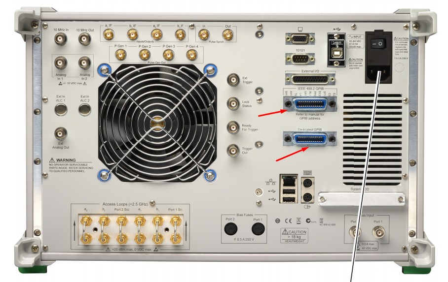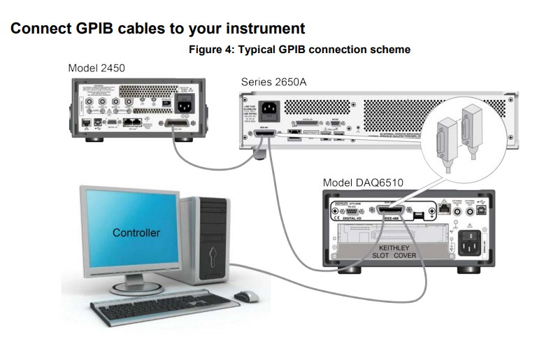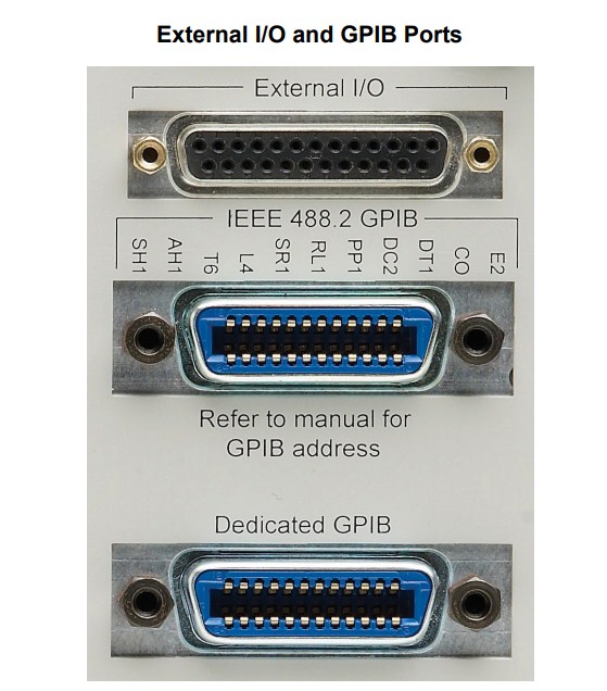 hệ thống được nối với nhau bằng Cable IEEE 488 GPIB. Cáp bao gồm một 24-Lõi cáp và hai sắt-Vỏ các cổng kết nối, và mỗi sắt-Vỏ kết nối bao gồm một rắc dương cắm và một rắc cắm âm.