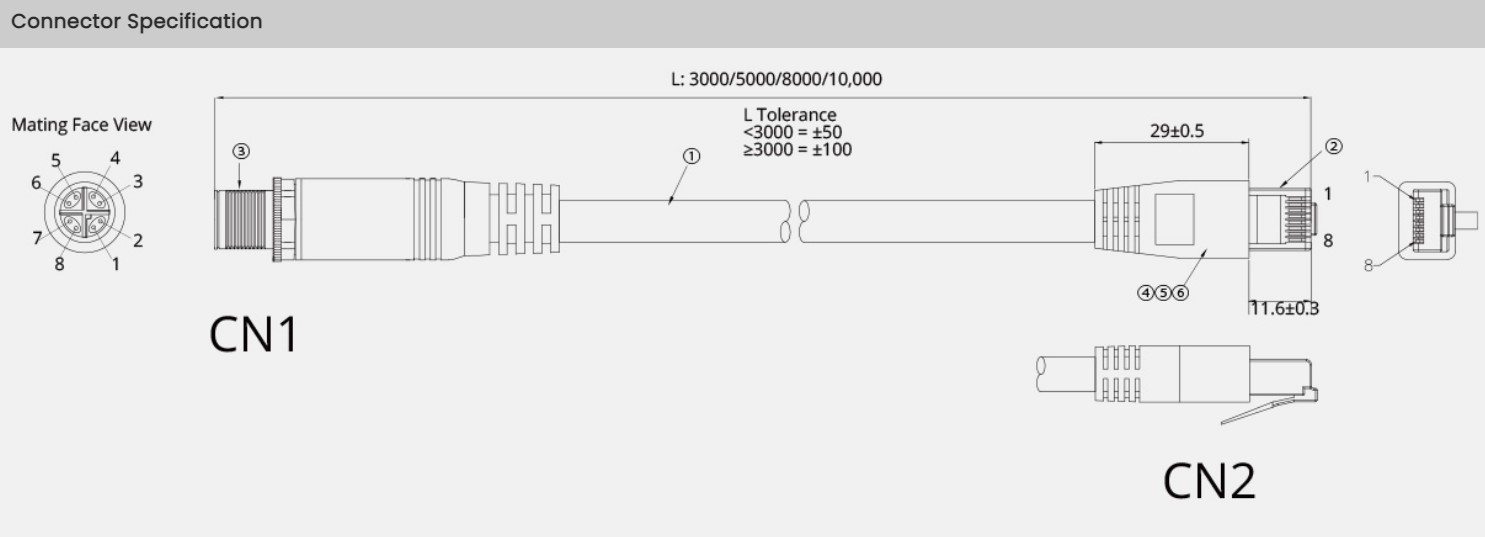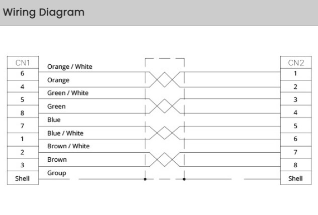 Wiring Diagram M12 X-Coded 8 Pin Male to RJ45 GigE Ethernet Cable