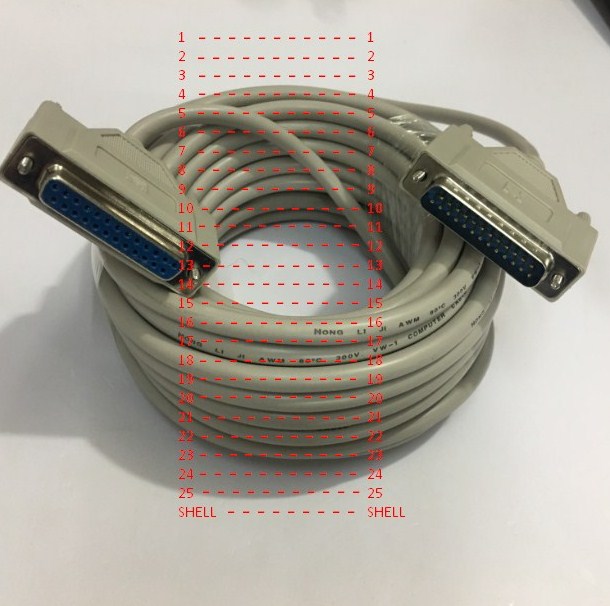 Cáp DB25 Female to Male thường được sử dụng cho các thiết bị ngoại vi nối tiếp như, máy in, máy quét, máy PLC, CNC, máy chiếu ILDA và nhiều thiết bị khác. Các đầu nối được đúc hoàn toàn với đai bắt vít tay cái cung cấp cho bạn một kết nối nhanh chóng và dễ dàng. Cáp DB25 Female to Male được nối dây với tiêu chuẩn thông qua sơ đồ chân sau: 1-1; 2-2; 3-3; 4-4; 5-5; 6-6; 7-7; 8-8; 9-9; 10-10; 11-11; 12-12; 13-13; 14-14; 15-15; 16-16; 17-17; 18-18; 19-19; 20-20; 21-21; 22-22; 23-23; 24-24; 25-25; SHELL –SHELL.