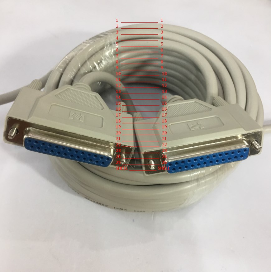 Cáp DB25 Female to Female thường được sử dụng cho các thiết bị ngoại vi nối tiếp như, máy in, máy quét, máy PLC, CNC, máy chiếu ILDA và nhiều thiết bị khác. Các đầu nối được đúc hoàn toàn với đai bắt vít tay cái cung cấp cho bạn một kết nối nhanh chóng và dễ dàng. Cáp DB25 Female to Female được nối dây với tiêu chuẩn thông qua sơ đồ chân sau: 1-1; 2-2; 3-3; 4-4; 5-5; 6-6; 7-7; 8-8; 9-9; 10-10; 11-11; 12-12; 13-13; 14-14; 15-15; 16-16; 17-17; 18-18; 19-19; 20-20; 21-21; 22-22; 23-23; 24-24; 25-25; SHELL –SHELL.