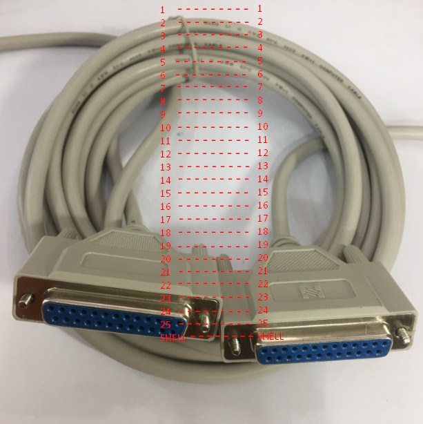 Cáp DB25 Female to Female thường được sử dụng cho các thiết bị ngoại vi nối tiếp như, máy in, máy quét, máy PLC, CNC, máy chiếu ILDA và nhiều thiết bị khác. Các đầu nối được đúc hoàn toàn với đai bắt vít tay cái cung cấp cho bạn một kết nối nhanh chóng và dễ dàng. Cáp DB25 Female to Female được nối dây với tiêu chuẩn thông qua sơ đồ chân sau: 1-1; 2-2; 3-3; 4-4; 5-5; 6-6; 7-7; 8-8; 9-9; 10-10; 11-11; 12-12; 13-13; 14-14; 15-15; 16-16; 17-17; 18-18; 19-19; 20-20; 21-21; 22-22; 23-23; 24-24; 25-25; SHELL –SHELL.