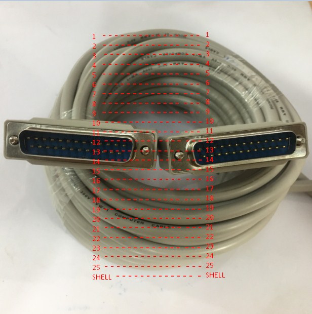 Cáp DB25 Male to Male thường được sử dụng cho các thiết bị ngoại vi nối tiếp như, máy in, máy quét, máy PLC, CNC, máy chiếu ILDA và nhiều thiết bị khác. Các đầu nối được đúc hoàn toàn với đai bắt vít tay cái cung cấp cho bạn một kết nối nhanh chóng và dễ dàng. Cáp DB25 Male to Male được nối dây với tiêu chuẩn thông qua sơ đồ chân sau: 1-1; 2-2; 3-3; 4-4; 5-5; 6-6; 7-7; 8-8; 9-9; 10-10; 11-11; 12-12; 13-13; 14-14; 15-15; 16-16; 17-17; 18-18; 19-19; 20-20; 21-21; 22-22; 23-23; 24-24; 25-25; SHELL –SHELL.