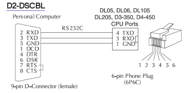 Cáp kết nối điều khiển PLC Programming D2-DSCBL KOYO Direct CPU DL05 DL06 DL105 DL205 D3-350 D4-450 to Computer Cable RJ12 6P6C to RS232 DB9 Female Grey Length 2M