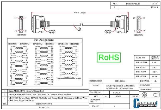 Cáp Kết Nối HPDB 50 Pin Male to Male SCSI II External Cable Length 1.5M