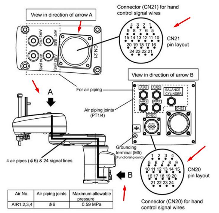 Connector CN20 For hand control signal wires - Connector CN21 For hand control signal wires