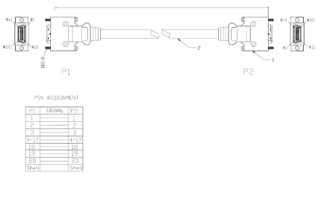 Pin to Pin MDR 20 Pin Male to SCSI MDR 20 Pin Male (pinout : 1-1, 2-2, 3-3,…, 18-18, 19-19, 20-20, G-G)