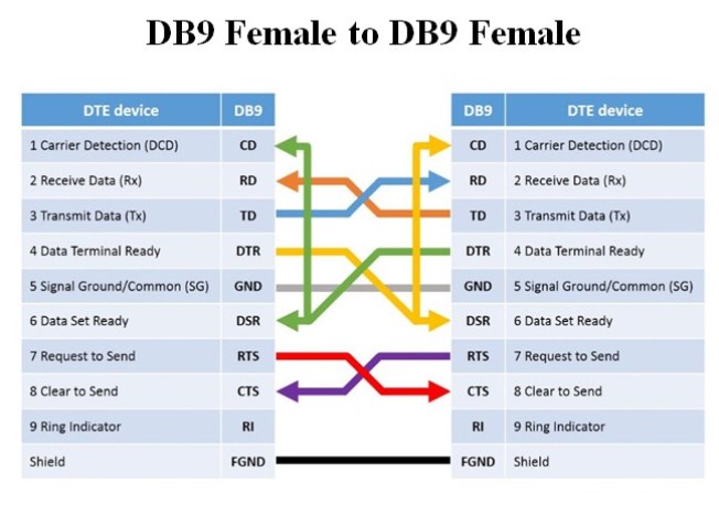 Có hai loại cáp được sử dụng và cả hai đều trông giống nhau ở bên ngoài, nhưng được nối dây bên trong khác nhau. Chúng là cáp DB9 nối thẳng từ nữ sang nữ và cáp Null 9 chân cho nữ. Cáp DB9 thẳng có tất cả các chân được kết nối giống nhau ở cả hai đầu (chân 1-1, 2-2,3-3, v.v.). Cáp Null (còn được gọi là Modem Null) có các chân được bắt chéo (chân 1-1, 2-3, 3-2, 4-6, 5-5, 6-4, 7-8, 8-7, 9-9). Bạn có thể sử dụng cáp DB9 thẳng để nhận chương trình yêu cầu cáp Null, bằng cách mua bộ chuyển đổi Null rẻ tiền để gắn vào một đầu của cáp DB9 thẳng. Điều này cho phép một cáp được sử dụng cho bất kỳ máy thu nào.