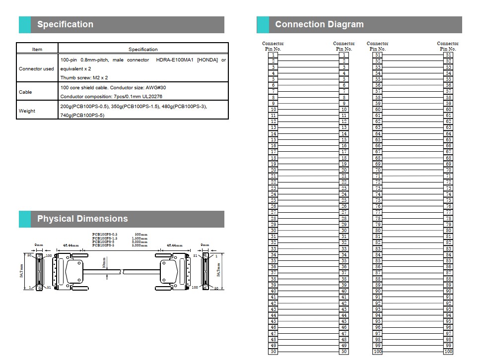 This product is a cable to be connected to 100 pin 0.8mm pitch connectors from 100 pin 0.8mm pitch connectors of an interface card made in us. Cable length 1.5m.