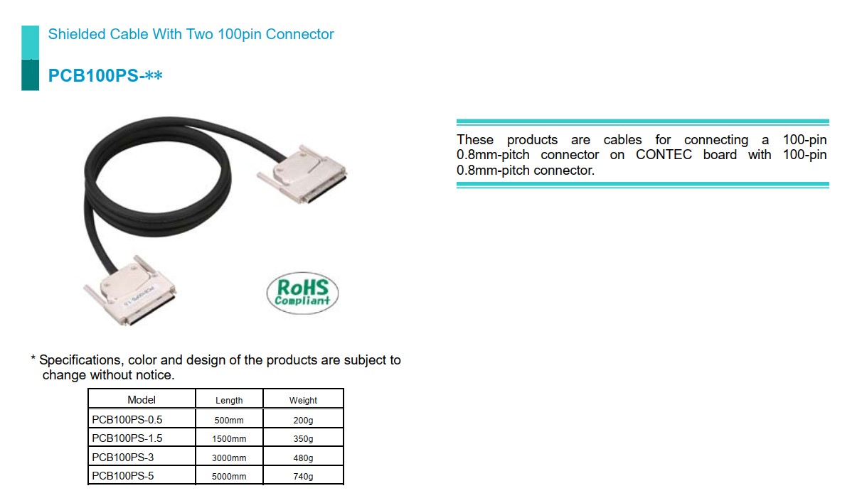 Cáp Kết Nối PCB100PS-1.5 Contec 100 Pin 0.8mm Pitch Digital I/O Connector Shielded Cable with 2 Sides Connector Dài 5ft 1.5M For SMC-8DF2-PCI