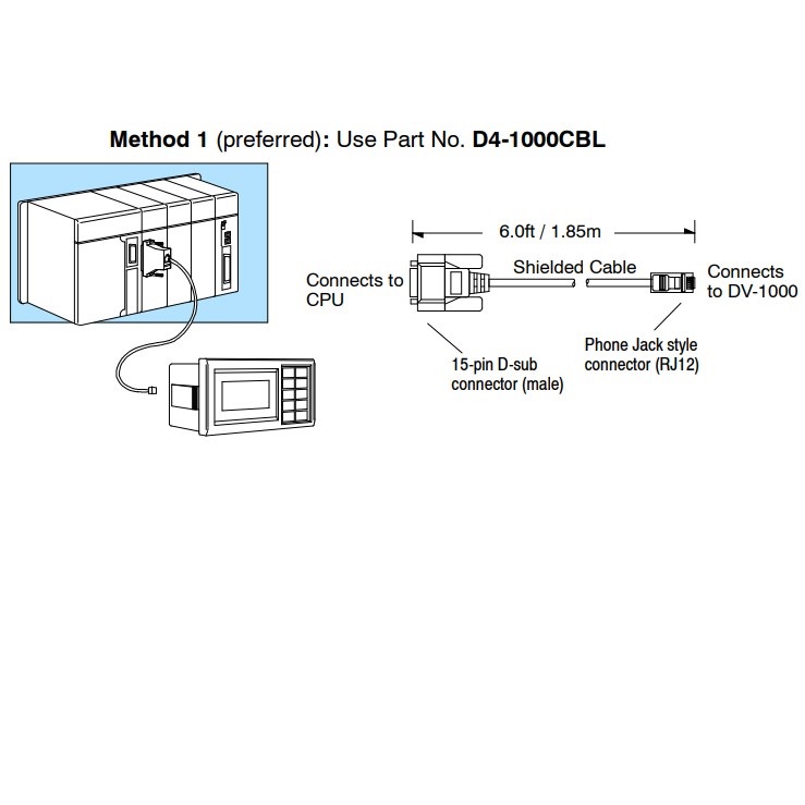 Loại sản phẩm: Cáp Kết Nối PLC Programming D4-1000CBL Cable KOYO DirectLOGIC 405 Với DV-1000 Direct View RS232C DB15 Male to RJ12 6 Pin Length 1.8M