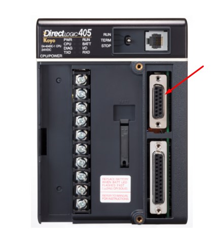 Rắc cắm kết nối KOYO DirectLOGIC 405 A: RS232C DB15 Male (thuật ngữ kỹ thuật đầu kết nối cổng Com 15 chân hai hàng chân cắm dương)