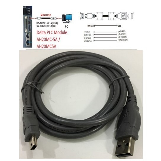 Cáp Kết Nối PLC Programming DELTA UC-PRG015-01A USB Type A to Mini B Cable For Module AH20MC-5A AH20MC5A Tới Computer Length 1.5M