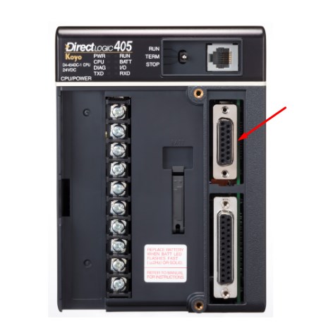 Rắc cắm kết nối KOYO DirectLOGIC 405 A: RS232C DB15 Male (thuật ngữ kỹ thuật đầu kết nối 15 chân hai hàng dương)