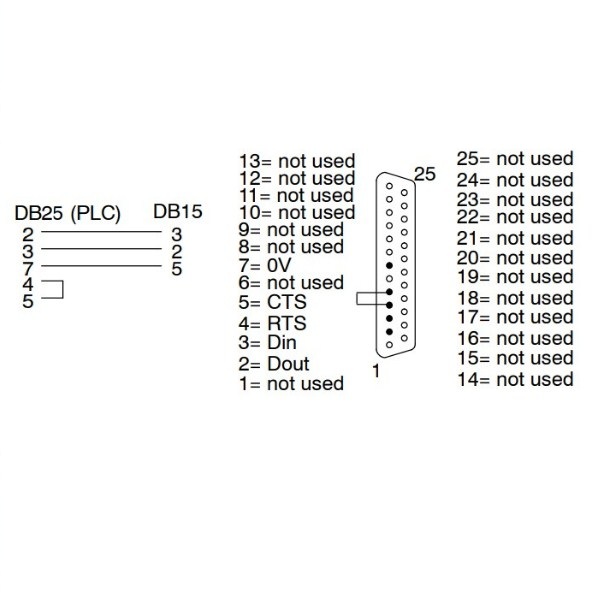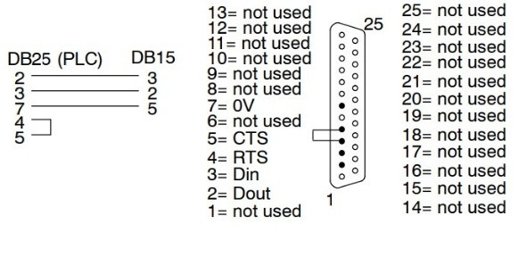 Rắc cắm kết nối KOYO DirectLOGIC 405 A: RS232C DB25 Male (thuật ngữ kỹ thuật đầu kết nối 25 chân hai hàng dương)