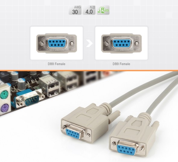 Tên cáp: Cáp Kết Nối RS232 NETmate 9핀 NULL MODEM (F/F) 케이블 1.8M [NMC-SFF18/화이트]