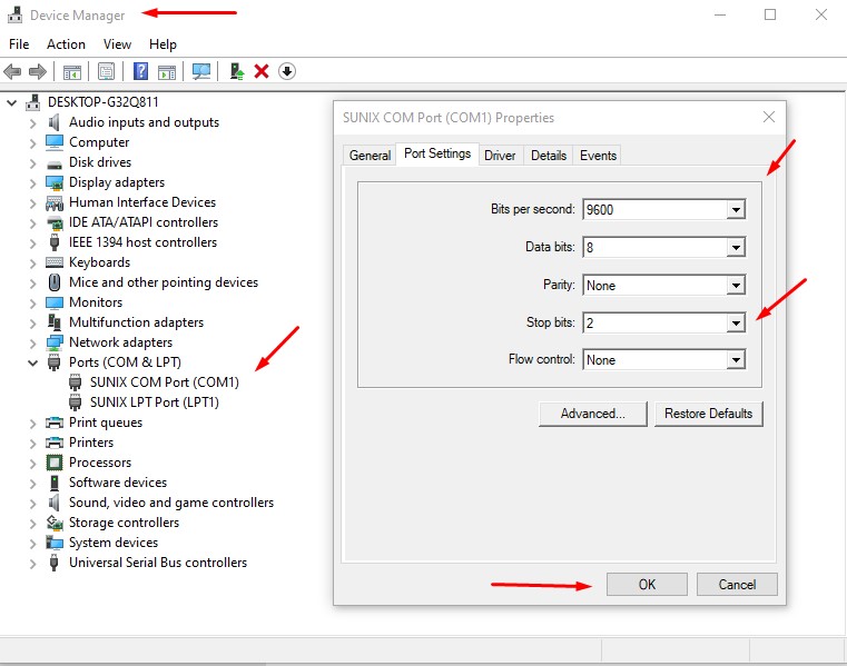 Port: Select the COM port used for the RS-232 serial
