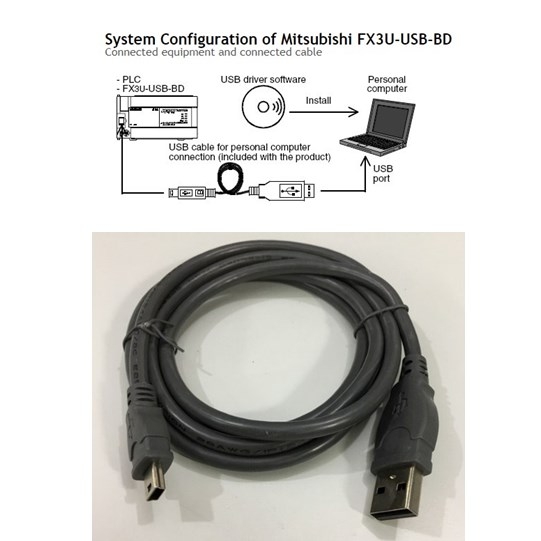 Tên cáp: Cáp Kết Nối Truyền Thông PLC Programming USB Type A to Mini B Cable For Mitsubishi FX3U-USB-BD Tới Computer Length 1.5M