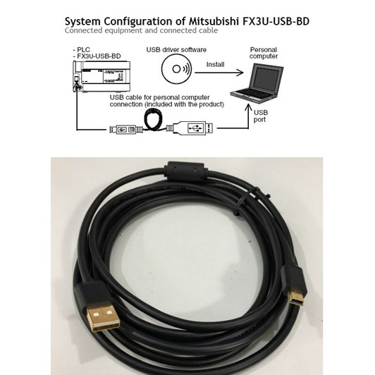 Tên cáp: Cáp Kết Nối Truyền Thông PLC Programming USB Type A to Mini B Cable For Mitsubishi FX3U-USB-BD Tới Computer Length 3M