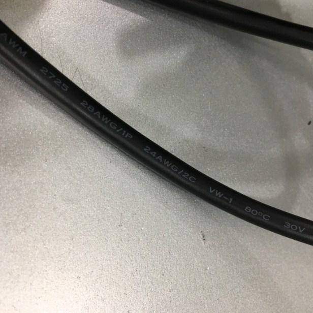 Thông số in nổi trên sợi cáp: AWM 2725 28AWG/1P 24AWG/2C VW-1 80°C 30V