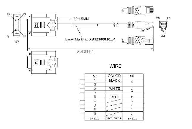 Model: XBTZ9008 Communication RS485 Cable RJ45 Male to RS232 DB9 Female