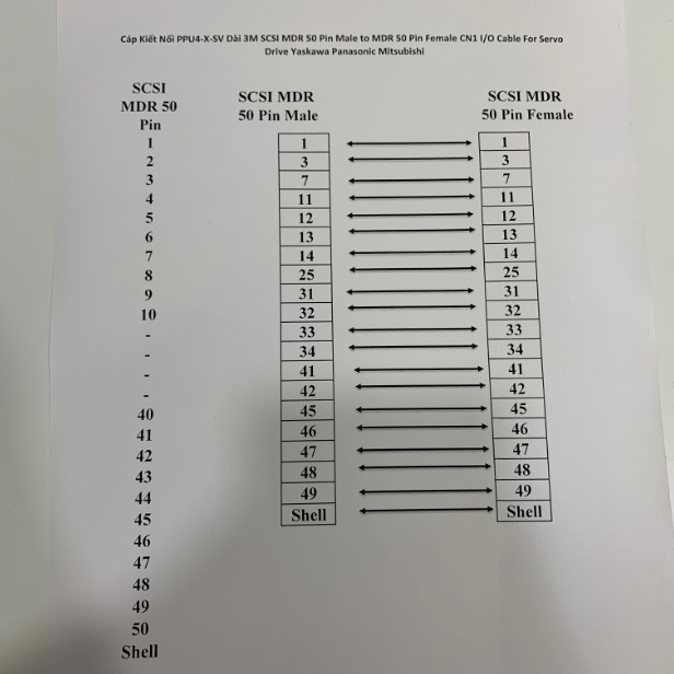Cáp Kiết Nối PPU4-X-SV Dài 3M SCSI MDR 50 Pin Male to MDR 50 Pin Female CN1 I/O Cable For Servo Drive Yaskawa Panasonic Mitsubishi