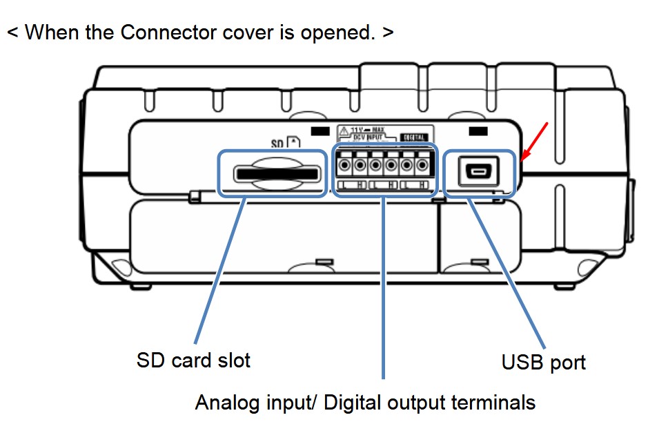 Connection of the USB cable between the instrument and PC