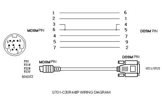 Brand: China/RS-422 Communication PLC Mitsubishi FX series and GOT1000 Series HMI Cable