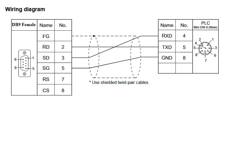 Wiring diagram PLC XINJE to GZMA WIO Monitor Display S-430A V3.0 Programming Cable RS232
