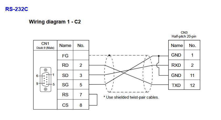 Wiring diagram RS232C Communication Cable HMI Fuji Electric Monitouch V8 V9 Series and Mitsubishi Servo MR-J2S-Series Port CN3